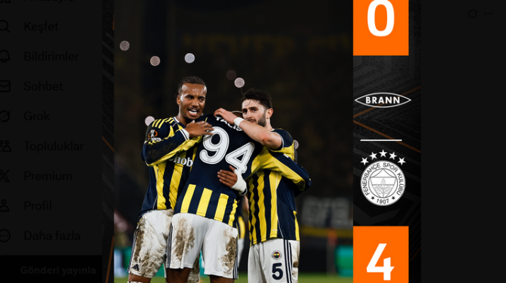 UEFA Avrupa Ligi’nin son haftasında Fenerbahçe, Norveç’in sert iklimine ve Brann’ın tribün baskısına rağmen sahaya hükmeden bir oyun ortaya koyarak Bergen deplasmanından 4–0’lık muhteşem