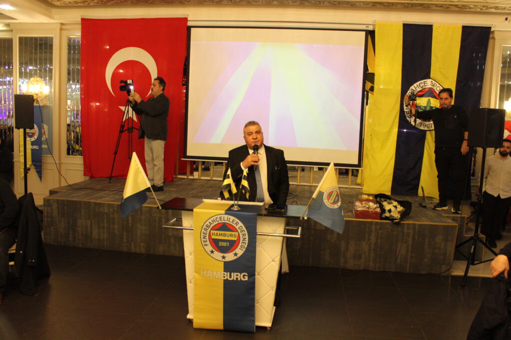 Programın moderasyonunu Hamburg Fenerbahçeliler Derneği Yönetim Kurulu Üyesi Mehmet Taner üstlenirken, açılış konuşmasını yapan Dernek Başkanı Mustafa Çömlek, katılımcılara teşekkür ederek önemli açıklamalarda bulundu. Çömlek, Türkiye’de yaşanan son gelişmeler nedeniyle Sadettin Saran ile planlanan telefon bağlantısının iptal edildiğini, ancak Saran’ın hakkındaki iddialardan aklanarak temize çıkacağına olan inancının tam olduğunu ifade etti. Başkan Çömlek ayrıca iddialı bir çıkış yaparak, “Bu sene şampiyon olacağız” sözleriyle salondan büyük alkış aldı.