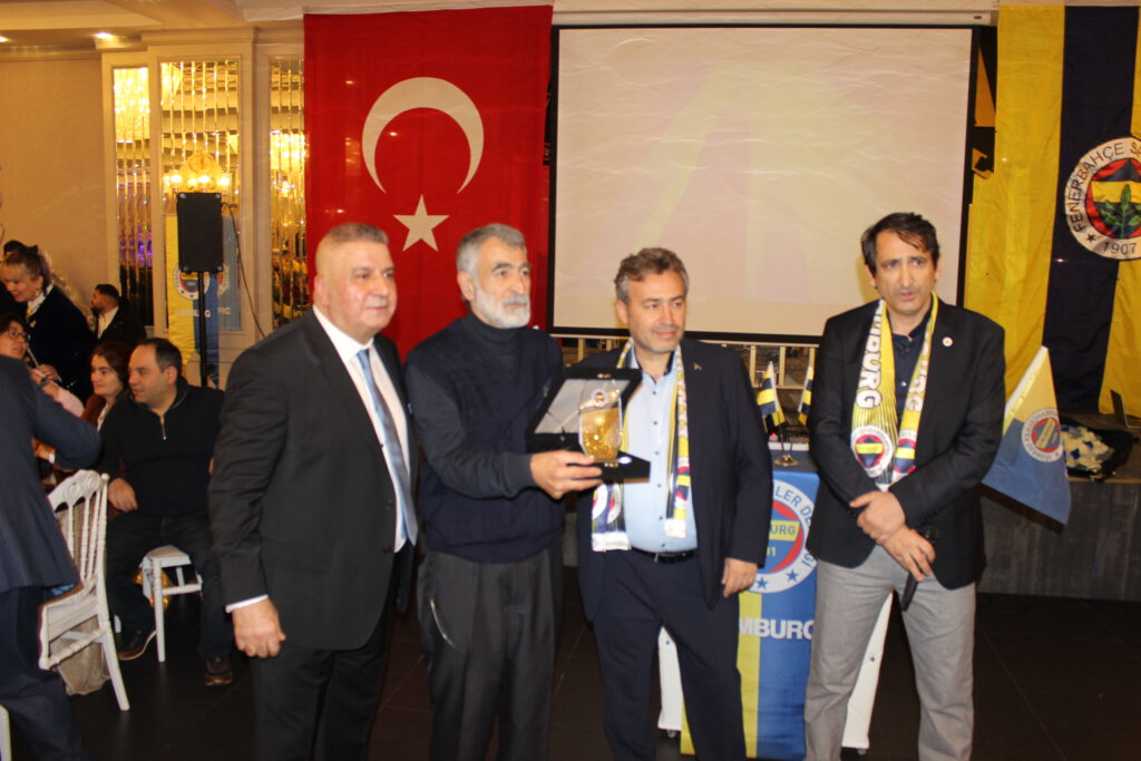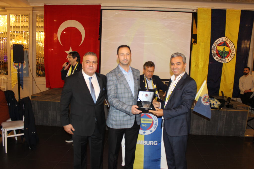 Hamburg Basın Birliği Başkanı Ahmet Durmuş ve gazeteci Erdal Altuntaş Hamburg Fenerbahçeliler Derneğine katkılarından dolayı birer plaket aldılar.