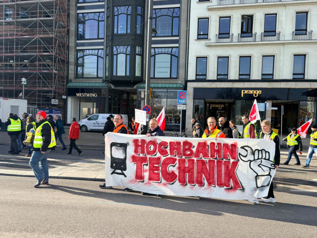 Sabah saat 09.00’da Hamburg Dammtor İstasyonu önünde toplanan ulaşım çalışanları, saat 09.45’te yürüyüşe başladı. Eylemciler Dammtorstraße üzerinden Gänsemarkt, Jungfernstieg ve Bergstraße güzergâhını takip ederek Spersort’ta düzenlenen açık hava mitingi ile protestoyu sonlandırdı.