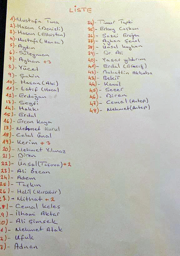 İşte katılımcılardan bazıları; Mustafa Tuna, Hasan Akın, Hasan Eldeniz, Mustafa (Hansa), Aydın, Süleyman Çetin,  Ayhan Oban, Yücel,  Şahin Saray,  Hasan (Abi),  Dr Latif Durlanık (Hamburg Üniversitesi öğretim görevlisi),  Erdoğan Bayram,  Seyfi Yıldız ( Kasabalı),  Hakkı Atakay,  Erdal Aydın,  Ercan Kaya,  Mehmet Kurul,  Celal Ünal,  Kerim Kılıç, Mehmet Yılmaz,  Diren,  Ünsal (Taşova),  Ali Özcan,  Adem,  Taşkın,  Halil ( Mannesman),  Mithat Döngel,  Cemal Keles,  İlhami Aktar,  Ali Şimşek,  Ufuk, Adnan, Timur Tapki,  Erbay Coşkun, Sezai Eroğlu, Ayhan Şenol  (T.A.S werkstat sahipleri), Ünsal Kayhan, Baytar Ali,  Aintin Raif,  Yasar Yıldırım Erdal (Elazığ), Bahattin Akbaba, Bekir, Kamil, Sezer, Diren,  Cemal (Antep), Mehmet Killi (TAS werkstat), Mehmet Atak.