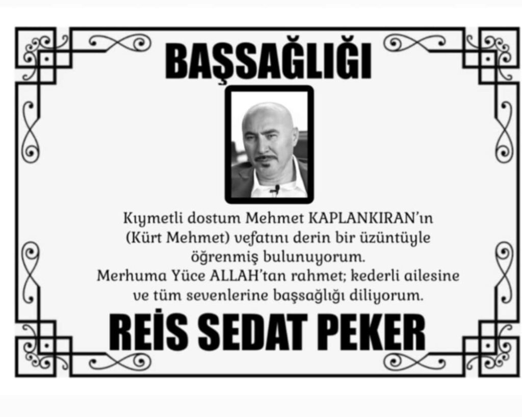 Türkiye’de tanınan isimlerden Sedat Peker de sosyal medya üzerinden yayınladığı bir mesajla Kaplankıran’ın vefatı nedeniyle başsağlığı diledi. Peker mesajında, “Merhuma Yüce ALLAH’tan rahmet; kederli ailesine ve tüm sevenlerine başsağlığı diliyorum” ifadelerini kullandı.