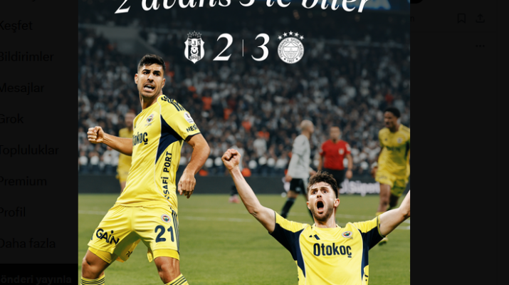 Süper Lig’in 11. haftasında nefesleri kesen derbide Fenerbahçe, deplasmanda 2-0 geriye düştüğü maçta Beşiktaş’ı 3-2 mağlup ederek zirve yarışında “Ben buradayım!” dedi. GAZETEM/SPOR Foto: