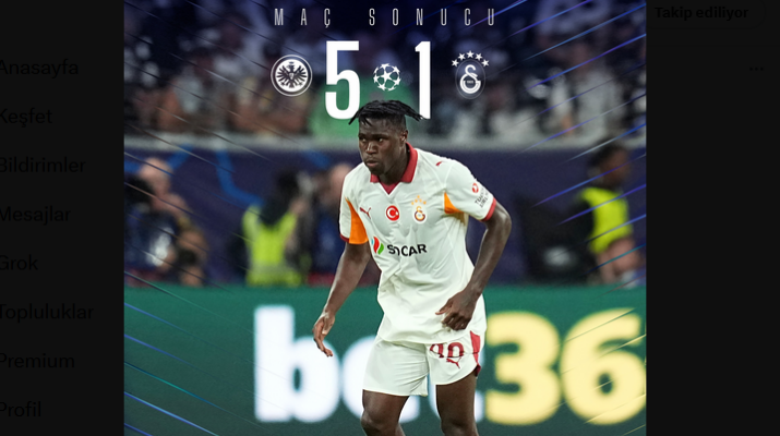 Şampiyonlar Ligi’nde temsilcimiz Galatasaray, deplasmanda karşılaştığı Eintracht Frankfurt karşısında adeta dağıldı. Sarı-kırmızılılar sahadan 5-1’lik ağır bir yenilgiyle ayrılarak taraftarını büyük hayal kırıklığına uğrattı.