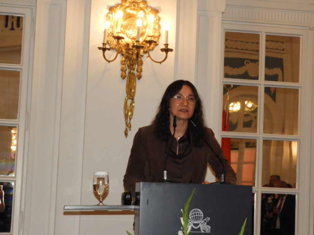 Funda Gür’ün konuşmasının ardından, Başkonsolos Berati Alver kendisine teşekkür ederek bir de hediye takdim etti.