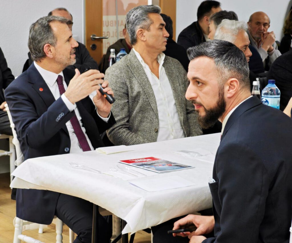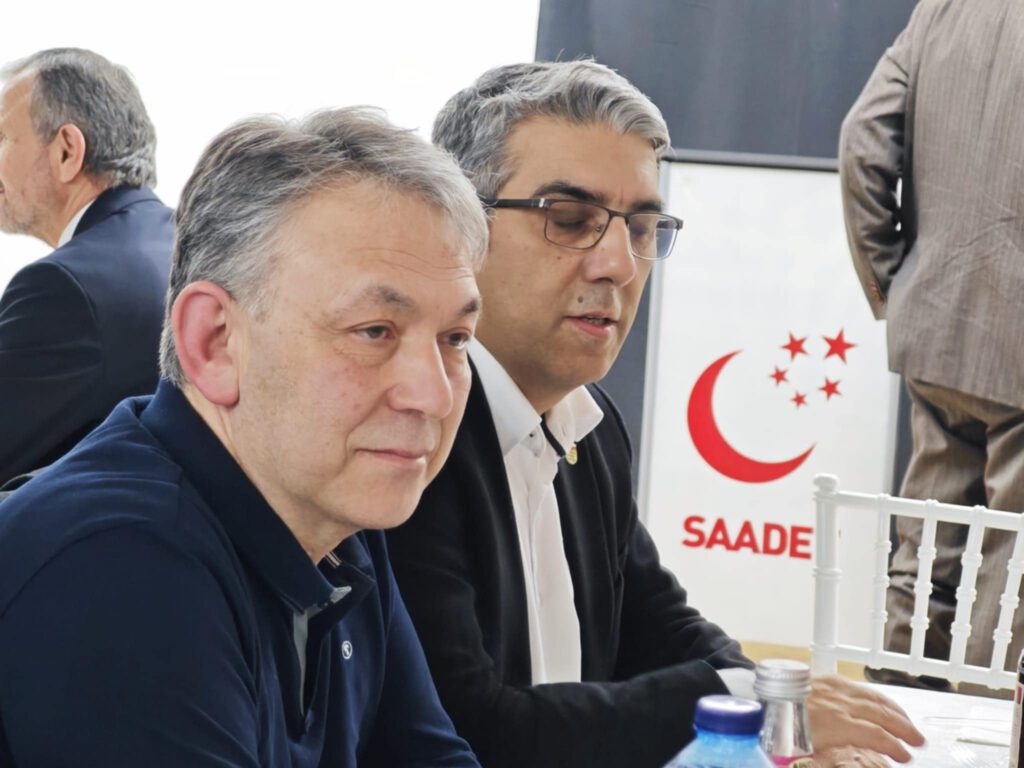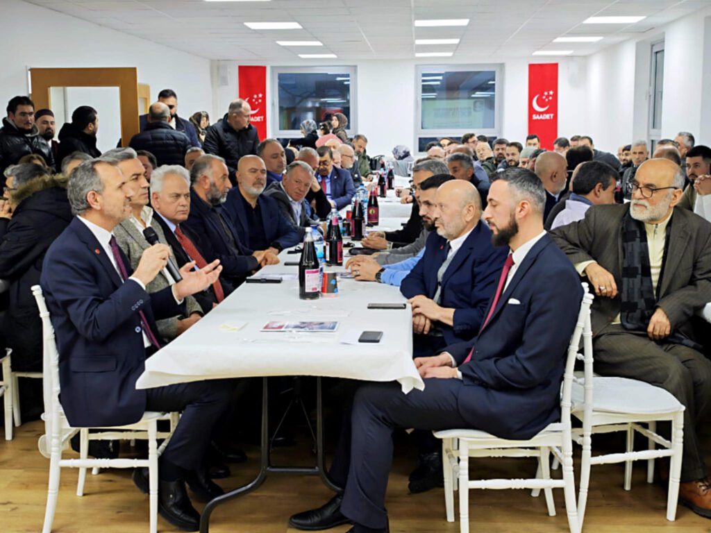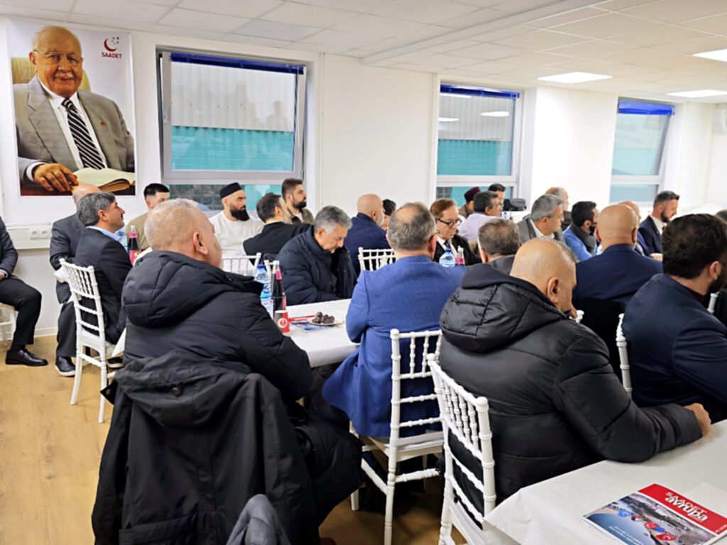 “Bugün cennet vatanımızdan teşrifleriyle bizi onurlandıran Erbakan Hocamızın sadık talebesi, Mecliste Milli Görüş’ün gür sesi, Saadet Partimizin Genel Başkan Yardımcısı ve Ankara Milletvekili Sayın Mesut Doğan, Saadet Avrupa Disiplin Kurulu Başkanı Sayın İbrahim Gümüşoğlu,