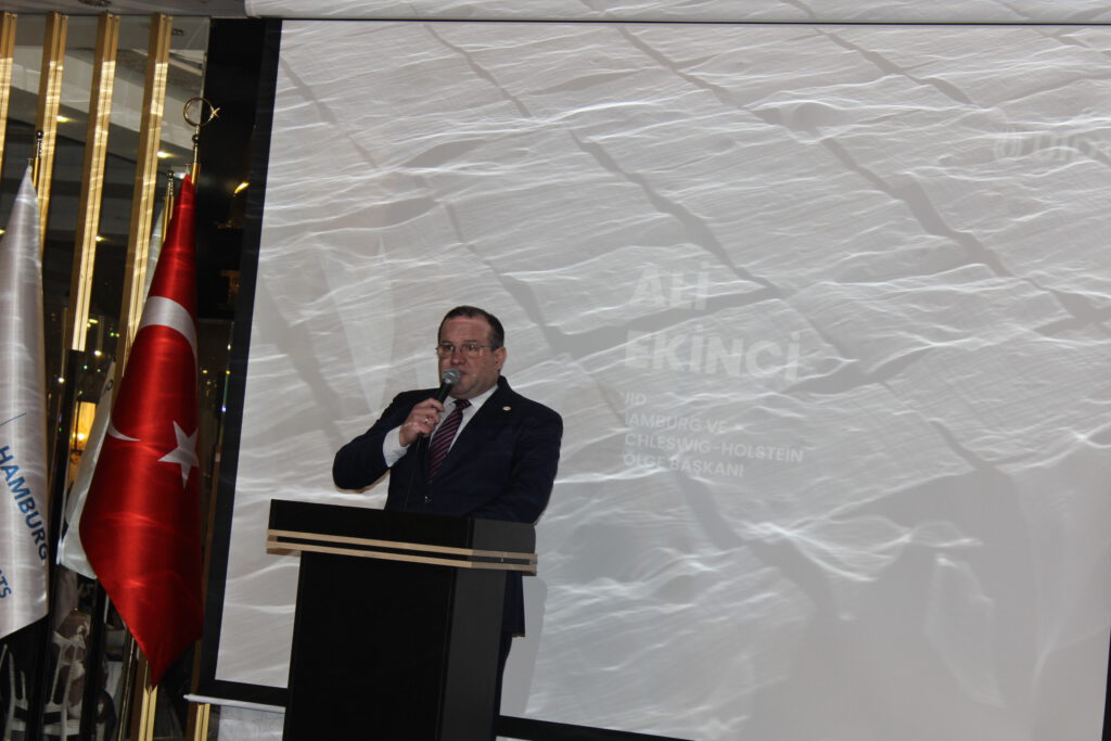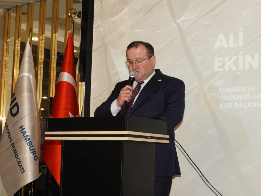 İftar programında konuşma yapan UID Hamburg Başkanı Ali Ekinci, derneğin faaliyetlerini katılımcılarla paylaştı. Ekinci, 6 Şubat depremi sonrasında Türkiye’ye gönderilen deprem konteynerlerinden bahsederek, bu sürece destek veren hayırseverlere teşekkürlerini iletti. Ayrıca Hamburg’da yaşayan vatandaşların ve sivil toplum kuruluşlarının karşılaştıkları sorunları, İstanbul Milletvekili Tuğba Işık Ercan’a ileteceğini belirtti.