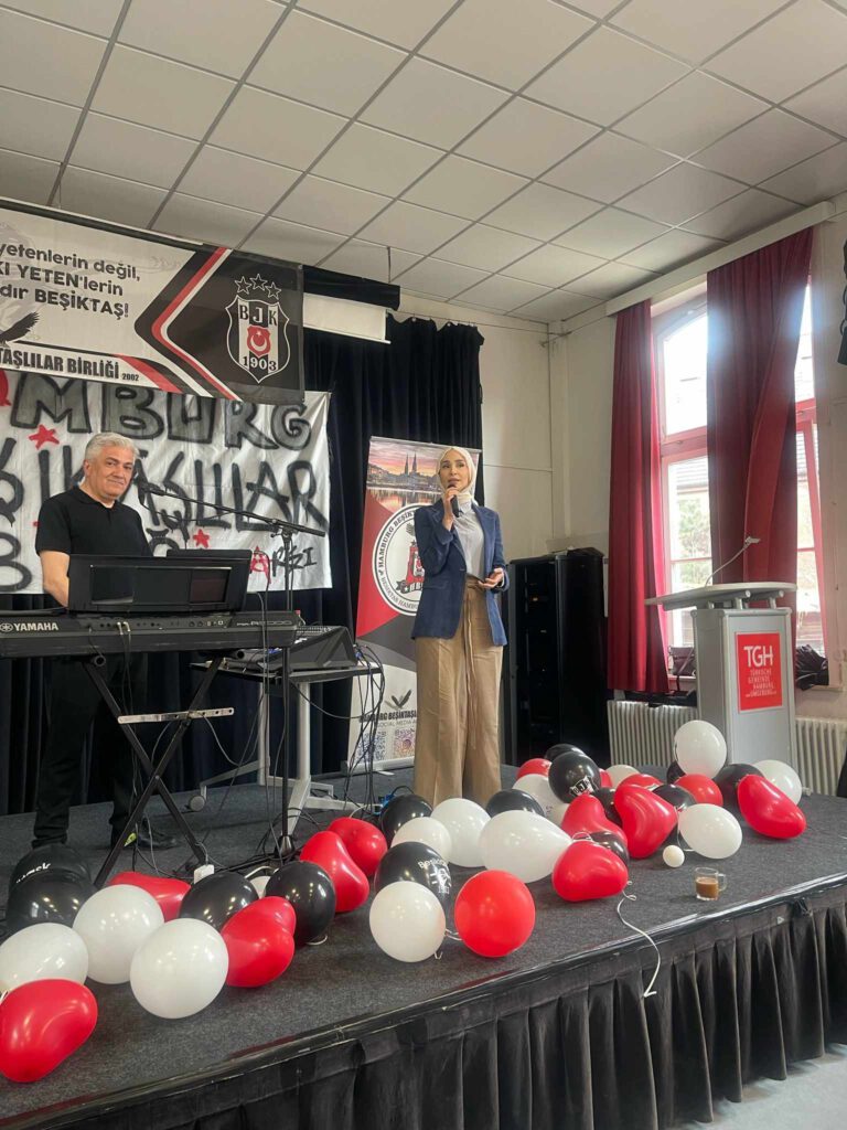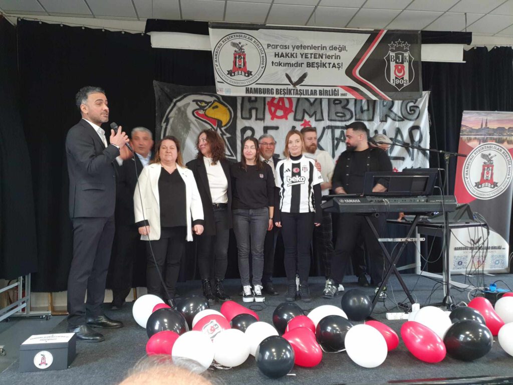 Yaklaşık 100 kişinin iştirak ettiği Hamburg Beşiktaşlılar Birliği’nin etkinliğinde TGH Başkanı Murat Kaplan ile yönetimden Turgut Duman ve Ragıp Ayhan.. Hamburg Galatasaray Derneği Başkanı Volkan Varol.. Fenrbahçe ve Trabzonlular camiası.. Hamburg Türk Basın Birliği Başkanı Ahmet Durmuş… Medya mensuplarından Nebahat Uzun, Emin Sağlık, Naciye Aslan, Yaşar Yıldırım Ali Akdemir ve Tayyar Özcan hazır bulundu.