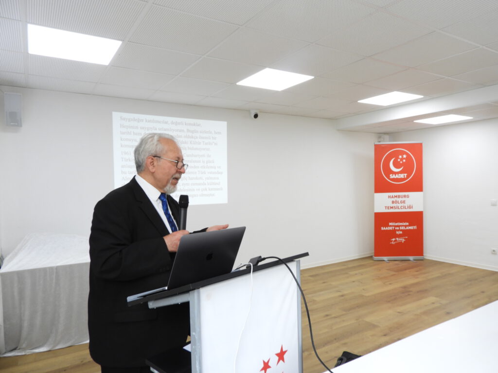 Programın moderatörlüğünü de yapan Saadet Avrupa Hamburg Bölge Merkezi Kültür ve Halkla İlişkiler Sorumlusu Ahmet Avcı, açılış konuşmasında katılımcıları selamlayıp “hoş geldiniz” dedi. Saadet Hamburg Bölge Başkanı Salih Demirci, farklı görüşlerden ve kuruluşlardan insanların bir araya gelmesinden duyduğu memnuniyeti dile getirdi. “Türk toplumunun çeşitli kesimlerinin bizi biz yapan değerlere ortak vurgu yapması bizleri son derece mutlu etti. Davetimize icabet eden kıymetli sivil toplum kuruluşları temsilcilerine ve değerli misafirlerimize hoş geldiniz diyorum,” diyerek sözü Türk-Alman ilişkileri alanında önemli çalışmaları bulunan Kültür Tarihçisi Dr. Latif Çelik’e bıraktı.
