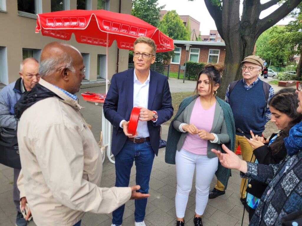 22 Ağustos Cuma günü SPD Hamburg Parlamento Grubu Başkanı Dirk Kienscherf, Hamburg Eyalet Parlamentosu Milletvekili Barış Öneş ve SPD İlçe Meclis Üyesi Miriam Natur, Billstedt semt pazarını ziyaret ederek bölge halkı ve esnafla bir araya geldi. Ziyaret sırasında vatandaşların beklenti ve sorunları dinlendi, çözüm önerileri üzerinde görüş alışverişinde bulunuldu.